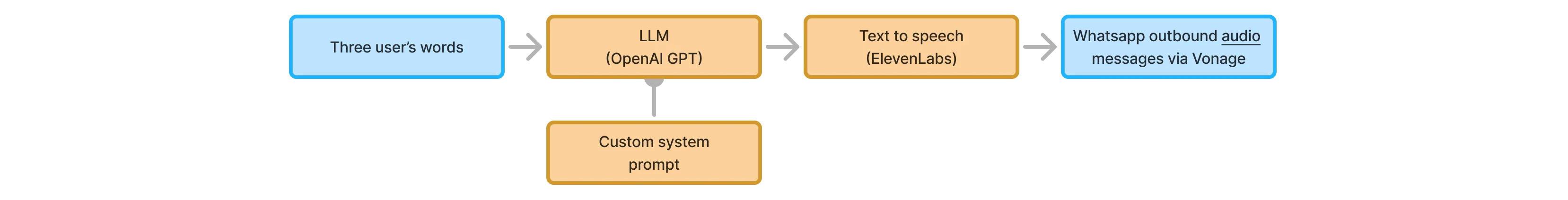 For this feature, users provide three words via text. These words are moderated and compiled into an LLM prompt to generate a custom Christmas story. The result is then voiced using text-to-speech, creating the impression of Santa narrating.