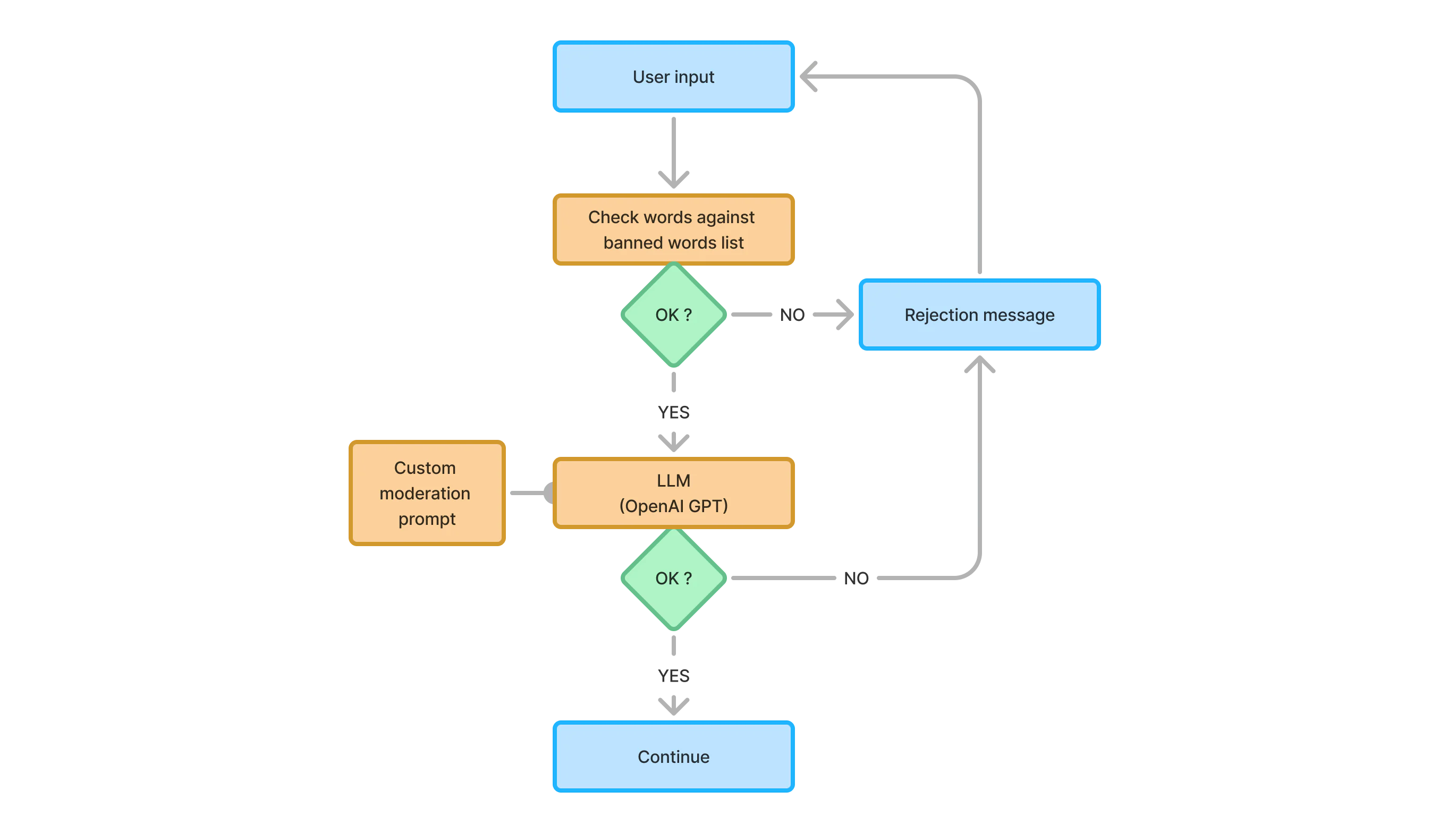 Second step: The LLM performs a global classification of the phrase. The LLM’s strength lies in detecting subtle contextual issues involving allowed words used in inappropriate contexts.