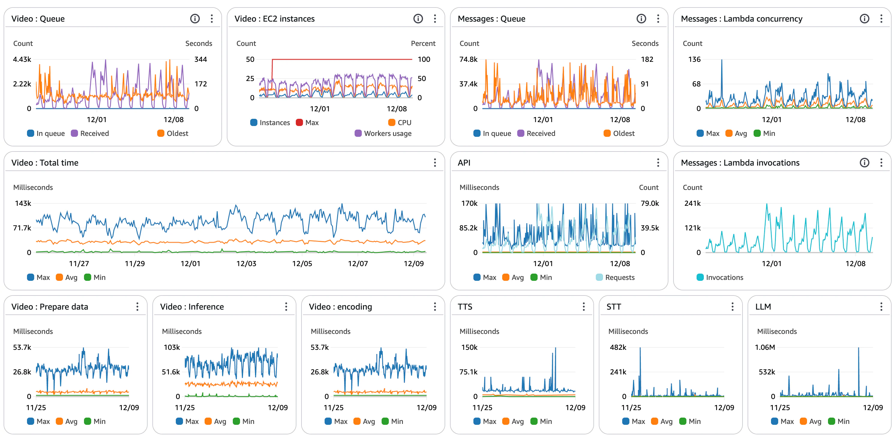 To achieve this, we collect latency metrics for each stage of the pipeline using AWS CloudWatch. These metrics are displayed on dashboards for real-time monitoring. These data points were also essential during development, allowing us to confirm the impact of code optimizations, select external services, adjust auto-scaling strategies, and conduct load testing. During the live phase, alarm alerts were set up to notify us in real-time of any abnormal values, ensuring continuous 24/7 monitoring without the need for constant human supervision.
